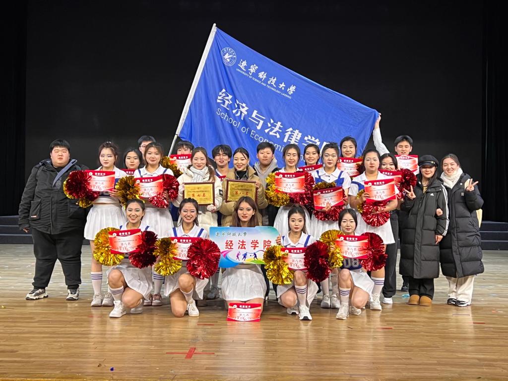 12月19日下午,华体会网页版在校礼堂举办“彩虹杯”校园啦啦操大赛。经法学院代表队经过数十天的努力训练,获得第八名的好成绩。