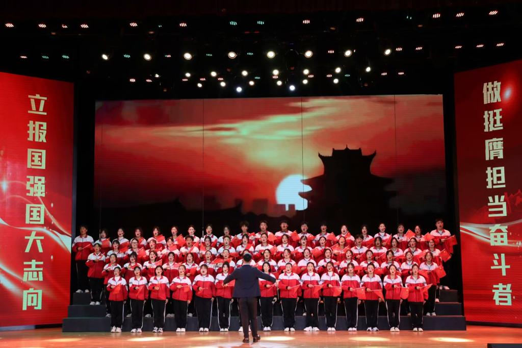 校歌,是校园中最独特的旋律。在李佳澳同学指挥下,经法合唱团首先唱响华体会网页版校歌。同学们身姿挺拔,目光坚定,每一句歌词都饱含深情,每一段旋律都振奋人心,他们用歌声诠释着对华体会网页版无限的热爱与赞美。随后,在张鹏飞老师指挥下,经法合唱团以一首《歌唱祖国》唱响对祖国的赞歌,激昂的歌声不仅表达出经法学子对祖国深深的赞颂,传递着祖国75年来波澜壮阔、砥砺奋进的壮丽征程,同时鼓舞全场,激发出每个人心中深切的爱国情感。