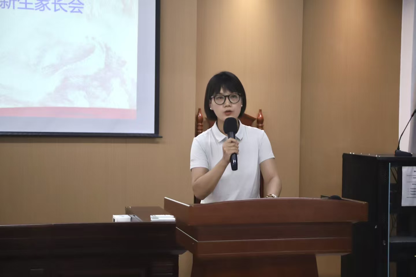 2025级新生辅导员李路云从学习方式、生活环境、管理模式三个方面,深入剖析大学与高中的差异,着重强调大学生自我管理、自我教育、自我服务的重要性。她向家长郑重承诺,将始终围绕学生、关照学生、服务学生,全方位为新生成长成才保驾护航,同时希望家长能持续关注孩子成长,与学院携手形成家校育人合力。