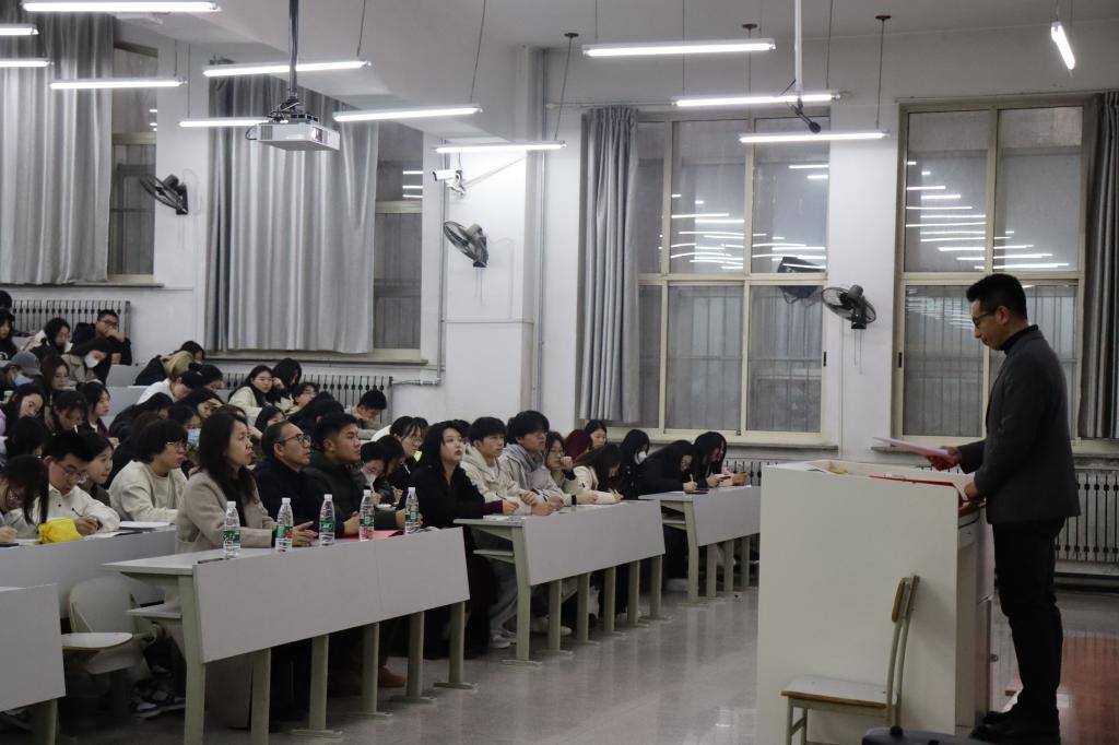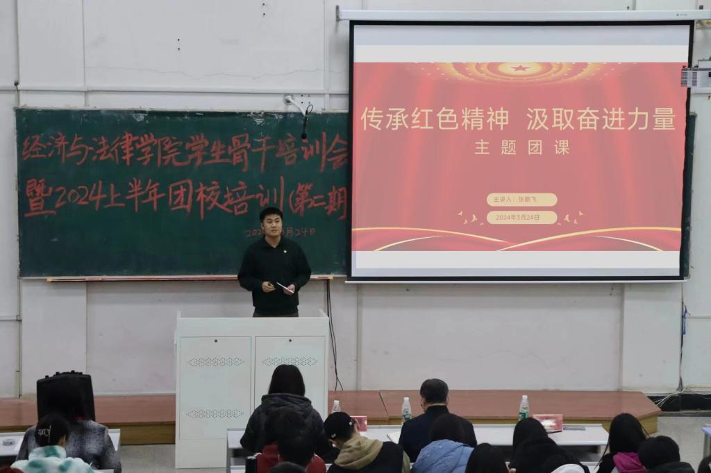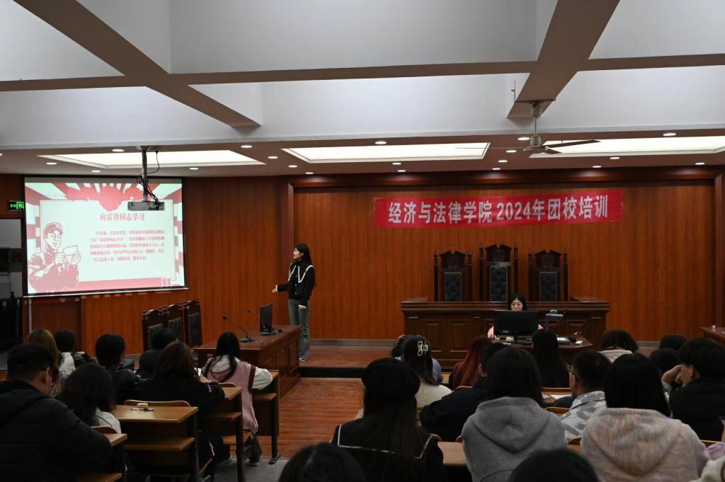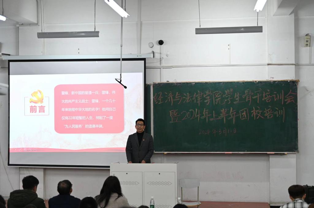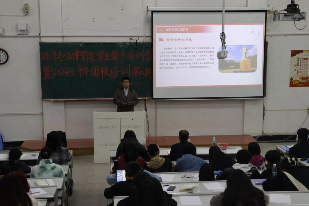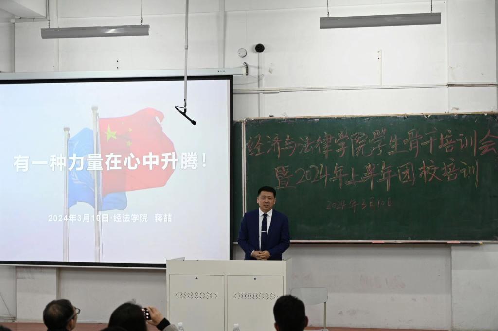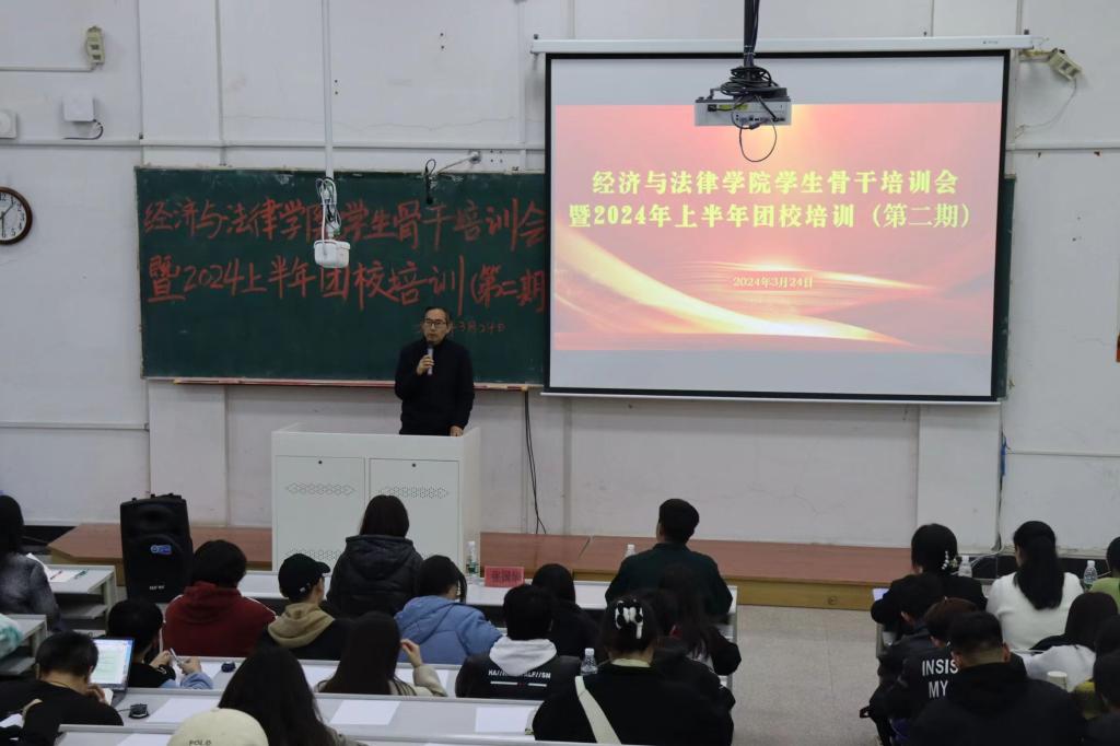 为了深入学习贯彻落实党的二十大精神,引导和帮助团员青年上好理论与现实相结合的“大思政课”,3月10日至4月2日,经法学院组织开展了学生骨干培训暨2024年上半年团校培训。学院党委书记赵智博、党委副书记张国华、学办主任齐艳萍、团委副书记张鹏飞、法律系主任蒋喆等分别为培训对象作专题讲座,经法学院全体学生骨干及团校培训全体学员共计278人参加了培训。
