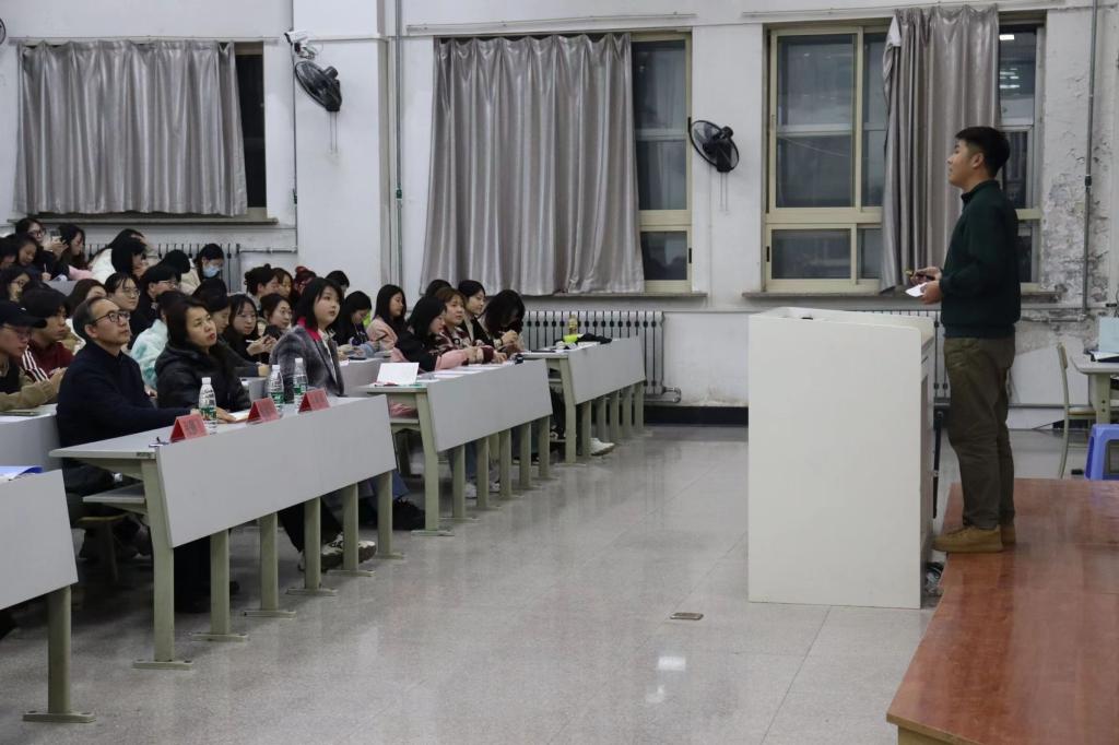 学院法律系主任蒋喆结合自身学习求职和海外维和的经历感受进行宣讲,引导学生珍惜机遇、把握当下,树立远大理想,热爱伟大祖国,用积极的态度和坚持不懈的意志克服成长道路上的种种困难。他通过汶川地震、电影《无问西东》中的实例,阐明了人生观、价值观对青年成长的重要作用,也让同学们更加深刻地认识到什么是爱国主义,激励同学们以饱满的热情和昂扬的斗志投入到学习和生活中,时刻以国家利益为重,他希望大家在成长道路上都能担当起时代重任,“心之所向,无问西东”。