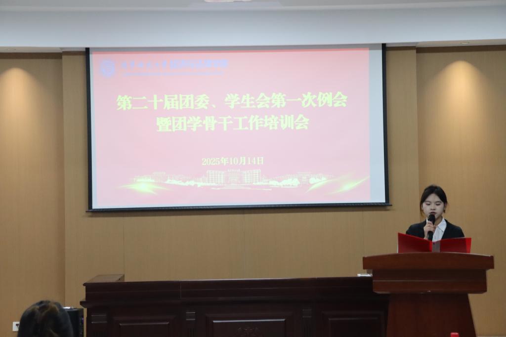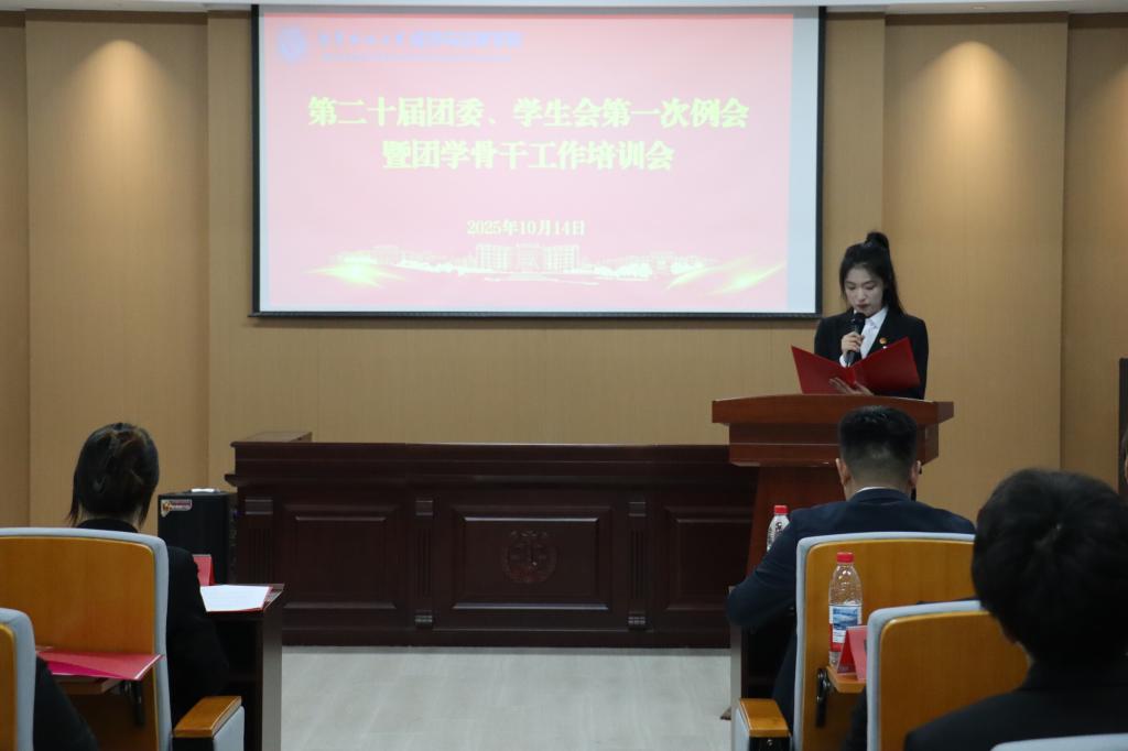 会议伊始,学生会主席团成员张珈奕宣读《经法学院学生会工作章程》,详细介绍了团委、学生会的工作职能与考核标准,并对各团学骨干的日常工作作出了规范与指导。随后,各部门负责人依次上台发言,介绍部门职责及未来工作规划。部门成员也进行了自我介绍,纷纷表示将以饱满的热情和高度的责任感投入工作,在今后的学习与实践中携手并进,共同为经法学院的发展贡献力量。