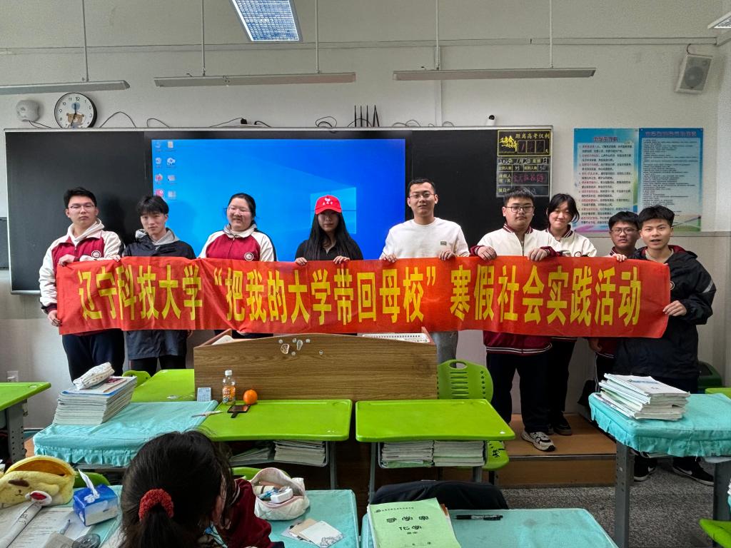 1月10日-1月16日,秦玉清、赵冰、潘姣颖、房文娜4名团队成员分别前往沈阳市新民市高级中学、沈阳市新民雨田实验学校以及吉林省敦化市实验中学,进行“把我的大学带回母校”寒假社会实践活动。
