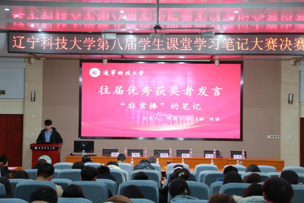 赛程结束后,第四届、第五届、第六届连续三届笔记大赛一等奖获得者刘浩作了题为“‘非常棒’的笔记”的分享。他从人生的第一本笔记入手,结合多次参加笔记大赛的经历,告诉同学们记笔记的重要性。他将笔记视作知己、伙伴和第二个老师,鼓励同学们不只做课堂的笔记,更要做人生的笔记。