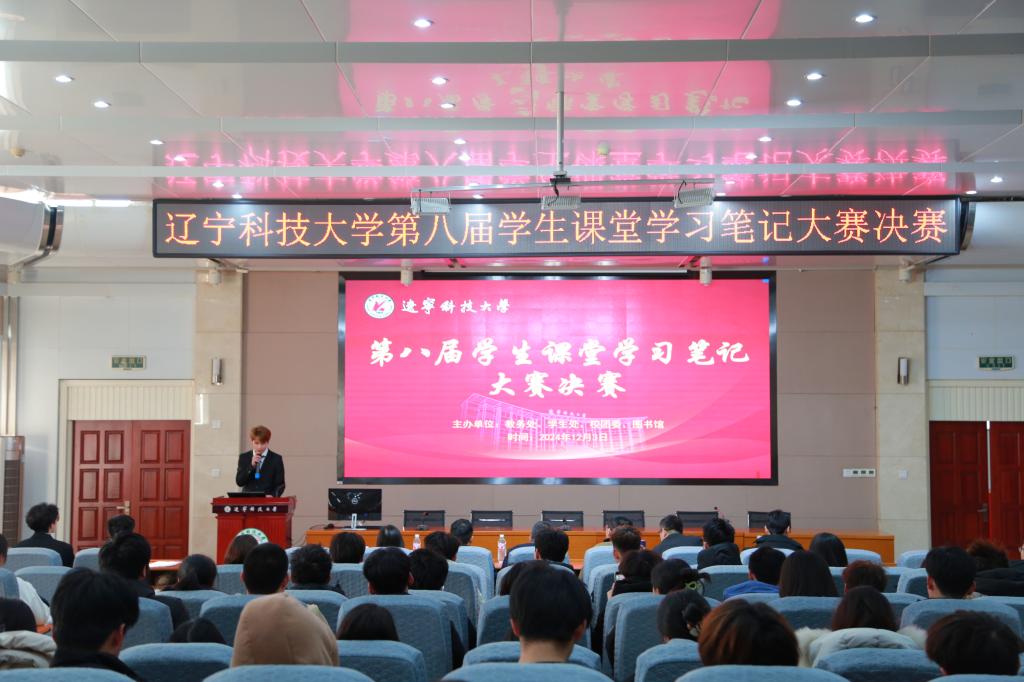 12月3日下午,由教务处、学生处、团委、图书馆联合主办,学生学业发展委员会承办的第八届学生课堂学习笔记大赛决赛在图书馆报告厅举行。校党委常委、副校长李胜利,相关单位负责人现场为获奖学生颁奖。李胜利作总结讲话。109名2024级新生代表作为大众评审在现场观看比赛。