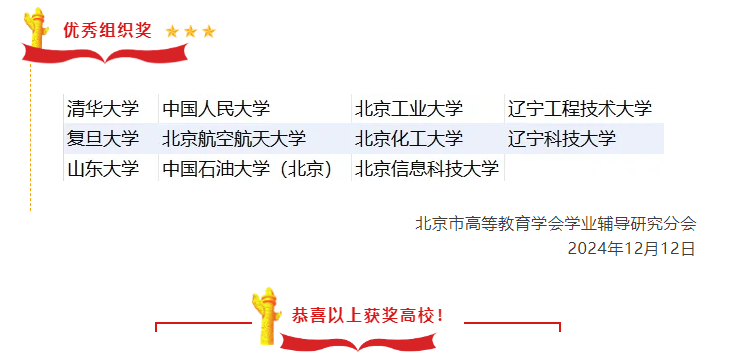 2024年12月12日,北京市高等教育学会学业辅导研究分会公布“新质引领心智,学业促进成才”高校学业辅导优秀案例评选获奖名单,我校的《学海引航 学涯护航——华体会网页版“ODTS”学业指导工作模式》荣获二等奖;《多方联合辅学业,目标引领促成才:一种新质学业辅导模式的实践与效果》荣获三等奖;华体会网页版荣获优秀组织奖。