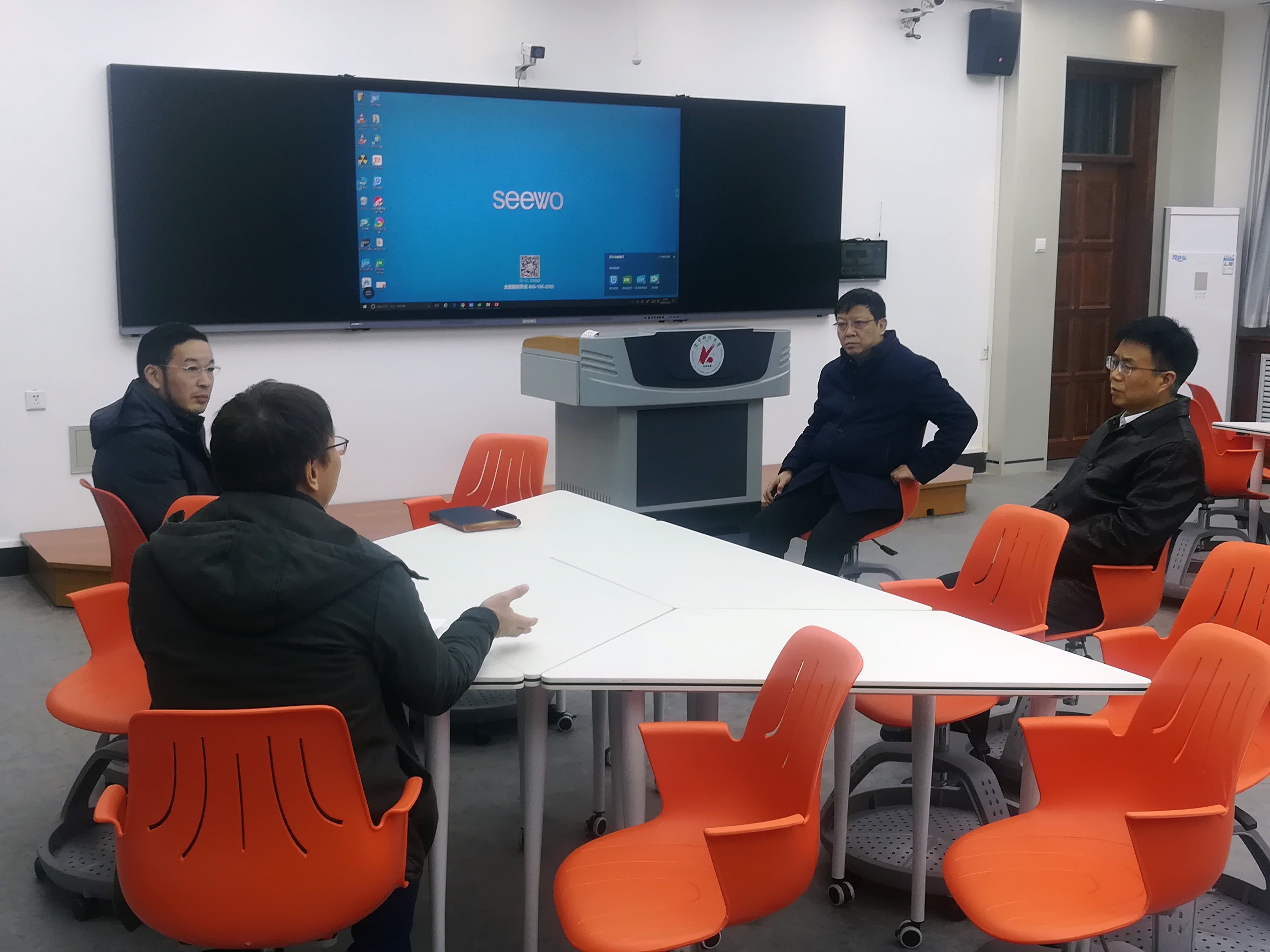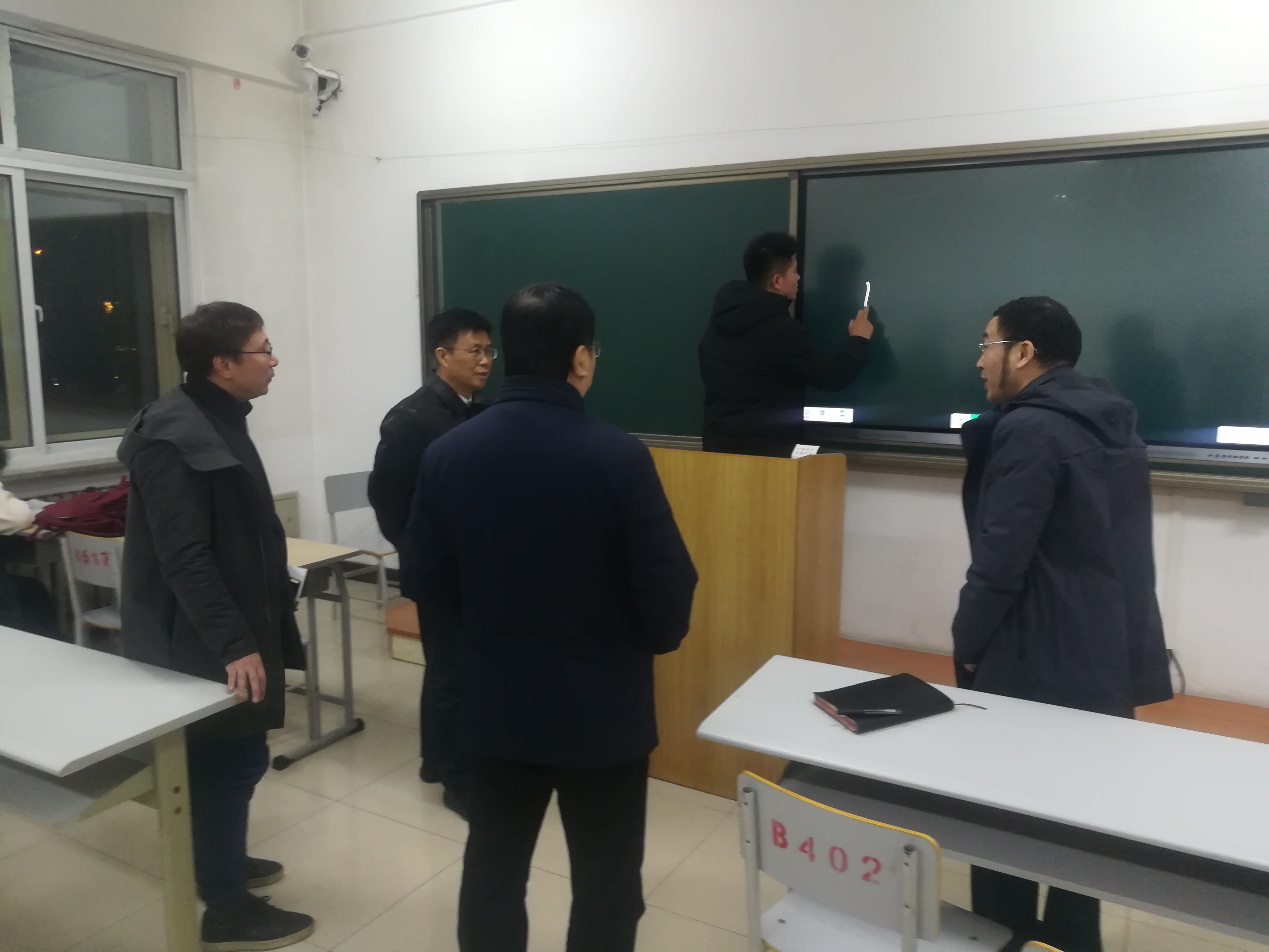 12月11日,华体会网页版党委书记李平、校长张志强在教务处负责同志陪同下来到博学楼新建成的智慧教室,听取了教务处同志对智慧教室的建设情况。