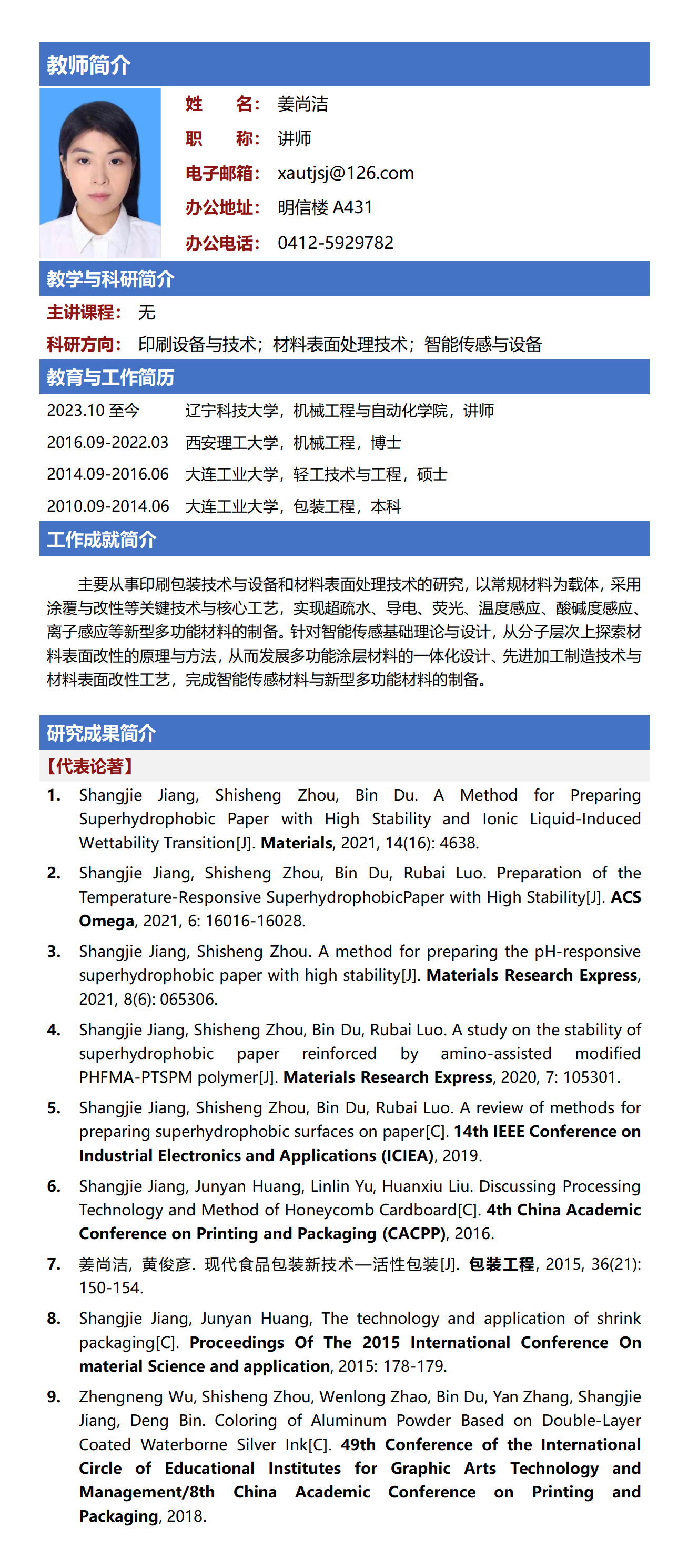 姜尚洁(讲师)