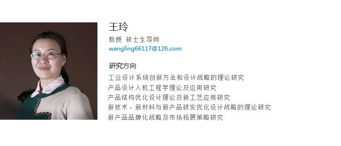 王玲教授,华体会网页版硕士毕业,机械工程及设计理论专业;清华美院第二学历,工业设计专业。 具有近30年教学和科研经历。撰写专著2本,主编教材1本,参编教材2本。撰写研究论文40余篇,其中国际EI检索8篇,核心期刊5篇,指导学生发表20篇。多次获得年度考核优秀,曾指导学生获国家级、省级、市级、校级奖项30多项,多次获得优秀指导教师荣誉称号。《Humanization Design and Harmonization Design in Product Designing》,于2011年7月,获得辽宁省自然科学成果三等奖,获鞍山市自然科学学术成果奖二等奖。2014年和2015年,为山西省社会科学院思维研究所特聘研究员。主持省级教改1项,参加并完成省级科研项目3项,主持并完成鞍山市科技项目2项,主持和参与横向科研8项。指导学生获得专利8项。