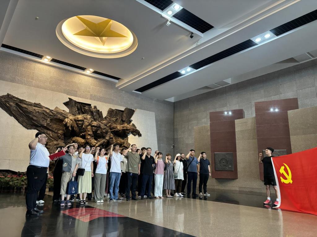 参观最后,大家在纪念馆序厅面向鲜红的党旗重温了入党誓词,时刻提醒每名老党员不要忘记自己入党的初心和使命,牢记入党誓言并终身践行入党誓词,同时也更好的为新党员树立标杆和榜样,让党的优良传统薪火相传。