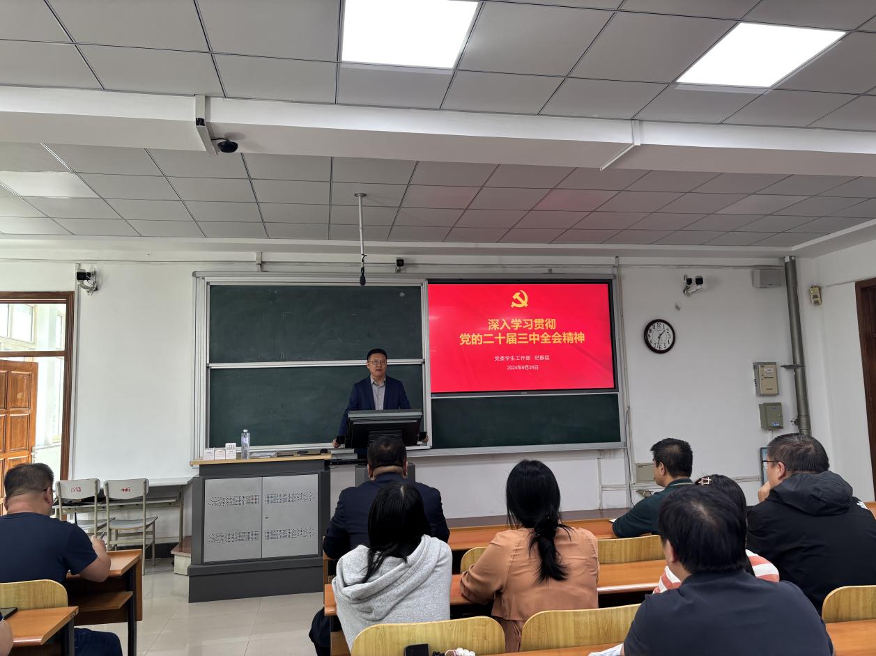 为深入学习贯彻党的二十届三中全会精神,根据学校党委的总体安排和科学部署,华体会网页版矿业工程学院、继续教育学院、体育部于9月24日,在博学楼A305教室举办了学习宣传党的二十届三中全会精神宣讲报告会,学校宣讲团成员学生处处长纪振廷作题为《深入学习贯彻党的二十届三中全会精神》的宣讲,全体师生党员参加。