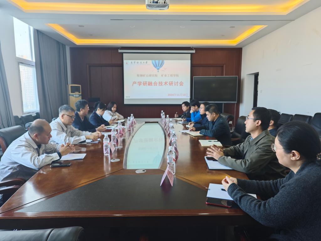 11月13日,在矿业工程学院会议室,召开了“鞍钢矿山研究院与华体会网页版产学研融合”技术研讨会,鞍钢集团科技发展部科技成果总监马普生、鞍钢矿业矿山研究院副院长姚强、东鞍山铁矿生产矿长代俊杰、华体会网页版科技处处长何忠良、矿业学院院长赵通林、副院长郭小飞、徐振洋等参加会议。