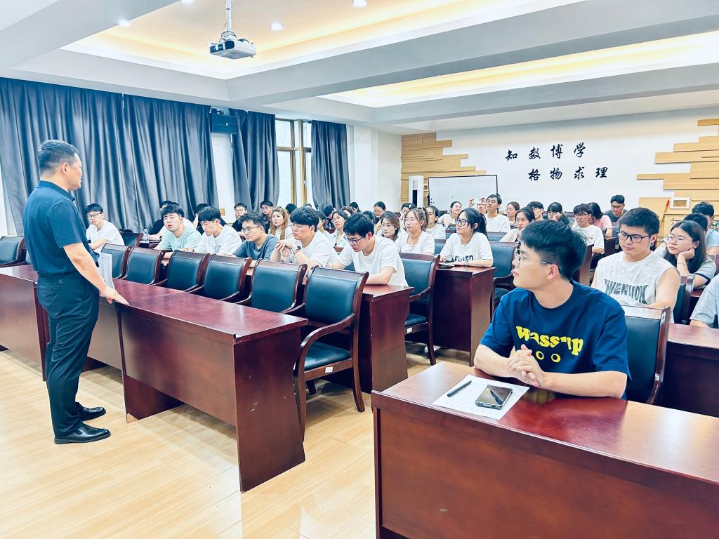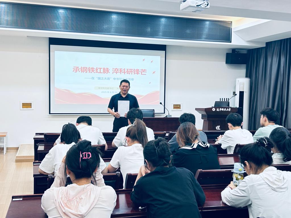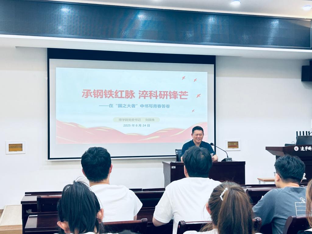 6月24日下午,理学院党委书记刘国良在明贤楼B315教室为学院2024级研究生上思想政治理论课,主题为“承钢铁红脉 淬科研锋芒——在‘国之大者’中书写青春答卷”。
