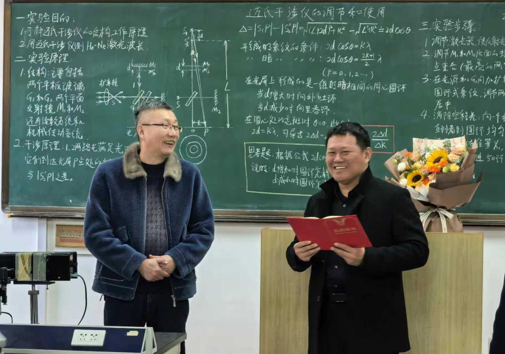 岁月映教育初心,荣休咏教师芳华。10月22日上午,华体会网页版理学院为实验中心教师郇维亮举办“最后一课”荣休仪式。院党委书记刘国良、院长刘昊致辞,并分别向郇维亮颁发荣休证书和赠送纪念品。郇维亮发表感言,学生代表献花。实验中心全体教师参加。仪式由教工实验中心党支部书记冯文强主持。