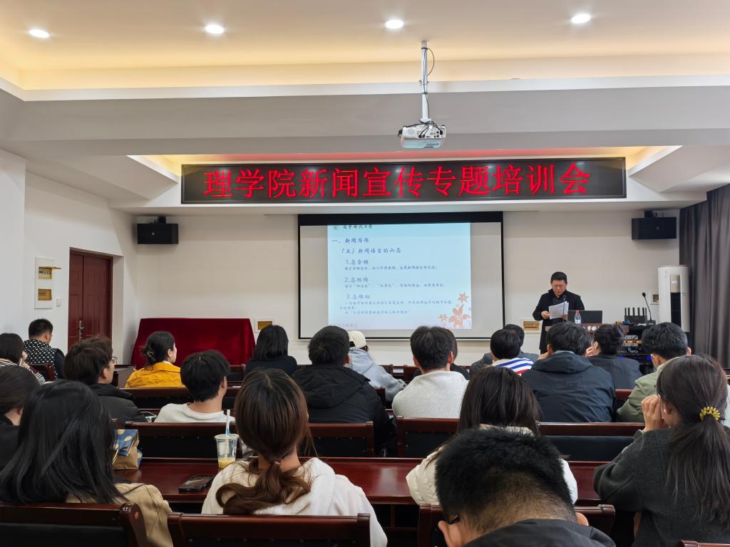 近日,华体会网页版理学院在明贤楼B315会议室召开新闻宣传工作专题培训会,旨在进一步推进宣传工作队伍建设、提升其新闻宣传工作能力和水平。学院党委书记刘国良以“基本新闻写作与拍摄技巧”为题,面向各党支部书记、宣传委员,各办公室、系(部、中心)相关负责人,研究生会、学生会等相关学生干部50余人开展培训。