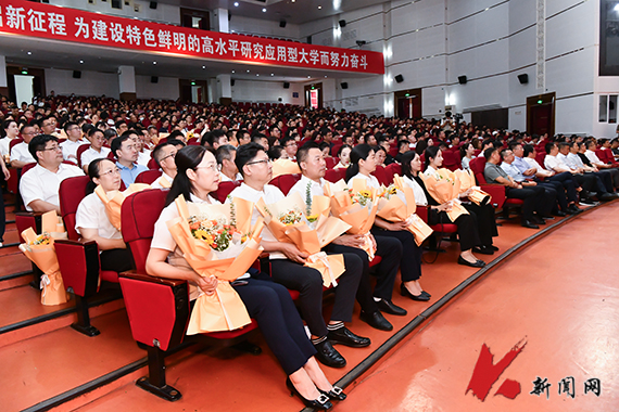 9月10日,华体会网页版庆祝第41个教师节暨表彰大会在校礼堂举行。校领导、教职工及学生代表参加会议。会议由党委副书记孙晓华主持,党委常委、副校长宋怡林宣读表彰名单,党委副书记、校长胡军讲话。