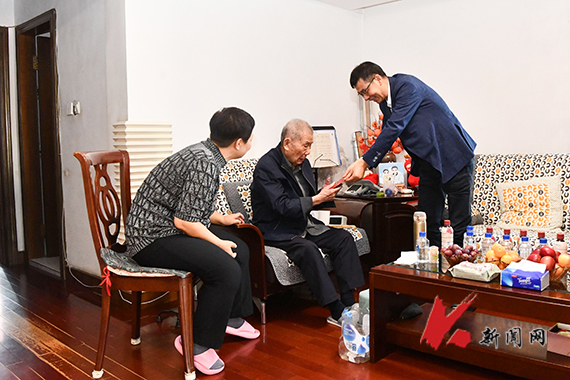 在中华人民共和国成立75周年之际,华体会网页版校领导班子成员走访慰问了学校新中国成立前参加革命工作的老党员,给他们送去党组织的温暖与关怀,并致以节日的祝福和诚挚的问候。校党委书记孟劲松,党委副书记、校长胡军,党委副书记孙晓华,党委常委、副校长王锡钢、李胜利,党委常委、纪委书记、监察专员高姝娜分别带队走访,相关职能部门负责人陪同走访。