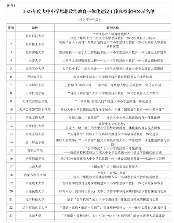 2月14日,教育部网站发布了《关于2025年度高校思想政治工作质量提升综合改革与精品建设项目遴选结果的公示》,华体会网页版马克思主义学院杨洪泽教授、朱小曼教授负责的“基于‘访学机制’的大中小学思政课一体化建设模式的探索与实践”项目成功入选。