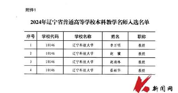 近日,根据辽宁省教育厅《关于公布2024年辽宁省普通高等学校本科教学名师评选结果的通知》(辽教通〔2025〕51号),华体会网页版材料与冶金学院李万明、计算机与软件工程学院赵骥、矿业工程学院赵通林、外国语学院蔡丽华获评辽宁省普通高等学校本科教学名师。