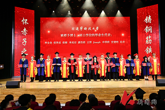 校党委书记孟劲松主持毕业典礼。校党委副书记、校长胡军致辞,并宣读2025届毕业生学位授予决定。校党委副书记孙晓华宣读辽宁省优秀毕业生表彰决定。校领导为获得辽宁省优秀毕业生称号的毕业生代表颁发荣誉证书,为毕业生代表拨流苏,颁发毕业证、学位证、校友联络大使聘书,赠送毕业纪念品。校学生会执行主席佟其聪、采矿2021.2班本科毕业生李华哲、化学工程与技术专业博士毕业生武帅、材料与冶金学院教师艾新港分别代表在校学生、本科生毕业生、研究生毕业生和教师发言。上海嘉德环境能源科技有限公司董事长兼总经理李东作为优秀校友代表送上毕业祝福。