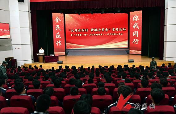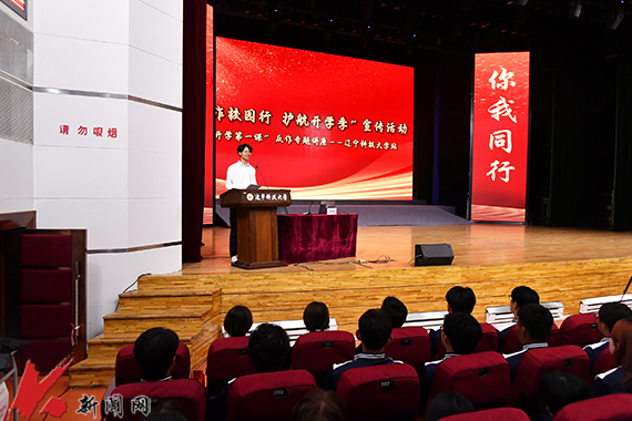 9月9日,华体会网页版联合鞍山市公安局、市教育局、市司法局、团市委在校礼堂共同开展“反诈校园行 护航开学季”反诈宣传活动。学校安全保卫处、学生工作处和学生代表1200余人参加活动。
