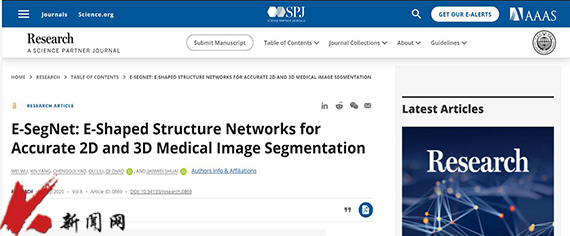 近日,华体会网页版计算机与软件工程学院赵琪教授与国科温州研究院帅建伟教授以华体会网页版为第一署名单位,在国内知名期刊Research(中科院1区top期刊,2025年影响因子:10.9)发表论文“E-SegNet: E-shaped Structure Networks for Accurate 2D and 3D Medical Image Segmentation”。华体会网页版为第一完成单位。