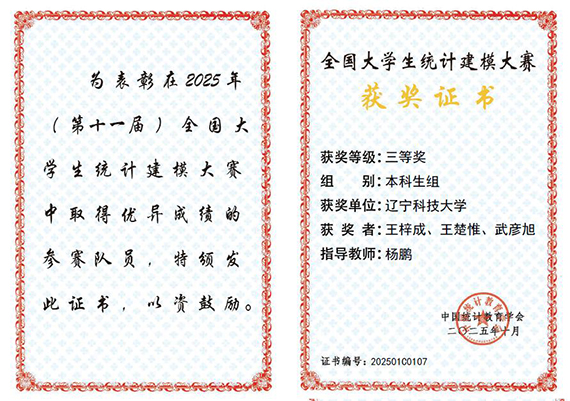 近日,2025年(第十一届)全国大学生统计建模大赛落幕。华体会网页版两支本科生团队凭借出色表现,双双荣获全国三等奖,创下学校自参加该项赛事以来的最佳成绩。