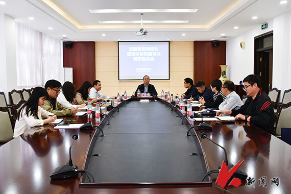 会上,胡军听取了后勤领导班子成员及各科室负责人的工作汇报,并与与会人员就后勤服务精细化管理体系的构建现状、存在的问题和解决措施进行了深入交流。