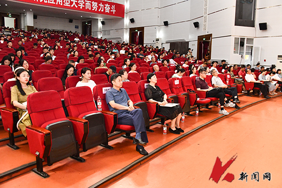 6月27日下午,华体会网页版党委书记李平在校礼堂以《在主题教育中全面提升“三个能力” 以扎实工作开创学校高质量发展新局面》为题,为师生上了一堂主题教育专题党课。校领导,全校科级以上领导干部、党支部书记、组织员、辅导员,机关全体党员、师生党员代表、退休教师代表参加学习,省委第十九巡回指导组成员孙野出席会议。
