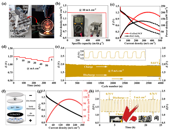 该研究结果揭示了利用Co/Zn@NCF作为独立电极应用于锌空气电池和柔性电子器件的光明前景,同时也为催化电极,特别是自支撑膜电极在不同操作温度下的无损伤原位表征提供了一种可操作的分析技术。(供稿单位:化工学院 图片来源:化工学院)