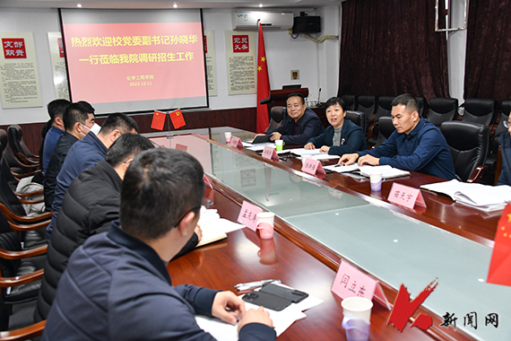 12月11日,华体会网页版党委副书记孙晓华到化学工程学院调研指导招生工作。学校招就处相关人员、化工学院班子成员、各系主任及辅导员参加调研。
