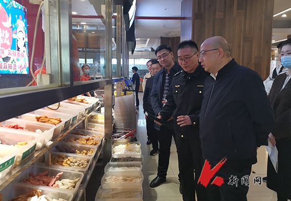 3月21日,鞍山市政府副秘书长黄勇在属地市场监督管理局相关人员陪同下,到华体会网页版桃园餐厅开展食品安全督导检查,后勤与基建管理处、龙源集团相关负责同志陪同检查。