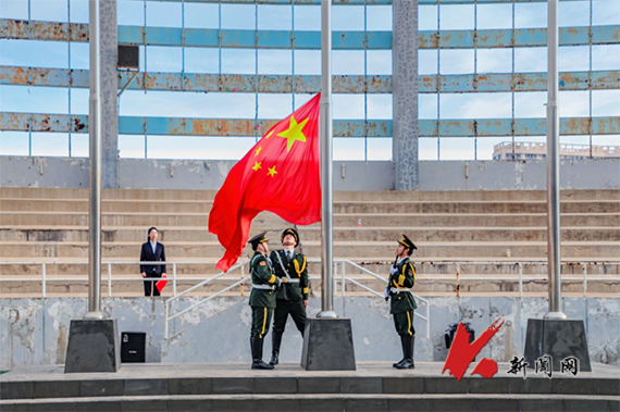 6点30分,升旗仪式正式开始。迎着初升的朝阳,升旗手、护旗手和国旗护卫方队伴着激昂的进行曲,踏着铿锵有力的步伐走向升旗台。国歌响起,鲜艳的五星红旗冉冉升起,全体师生面向国旗庄严肃立,行注目礼。