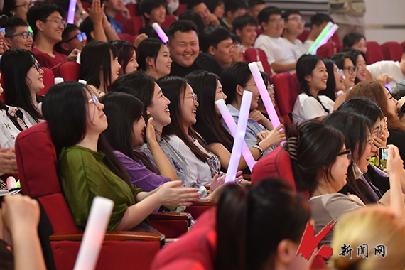 展演以“闪耀”为主题,寓意2024届毕业生在即将开启的人生新征程中精彩绽放,闪耀光华。展演分为“岁月如歌”“流年似锦”“溯光而行”三个篇章,伴随2024届毕业生追忆美好大学时光,感恩师长教诲陪伴,希冀未来鲲鹏万里。男声四重唱《友谊地久天长》柔美醇厚,街舞《We are together》律动热烈,歌曲《昨日青空》清澈婉转。经法学院教师温馨、招生与就业处教师王旭等带来歌曲《小美满》,为毕业生送上最真挚的祝福。舞蹈《上春山》让人仿佛穿越一般,置身满园春色的华体会网页版校园。极具戏曲特色的创意表演《沧海一声笑》,加之校工会教师鲁焱、国有资产管理处教师周建国的书法寄语“前程似锦”“未来可期”,展现了中华传统文化的魅力。感人至深的歌曲《父亲》,唱出了父爱的伟大与深沉。外语学院芳华合唱团、艺术学院筑梦合唱团一曲《海阔天空》宽广嘹亮,振奋人心。相声《大风车》、小品《时间都去哪了》“热梗”和金句不断,掌声呐喊声此起彼伏。