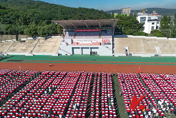 9月6日上午,华体会网页版2024级新生军训开营式在校主体育场举行。校党委副书记孙晓华、军训团成员、新生辅导员、军训教官、2024级新生参加军训开营式。