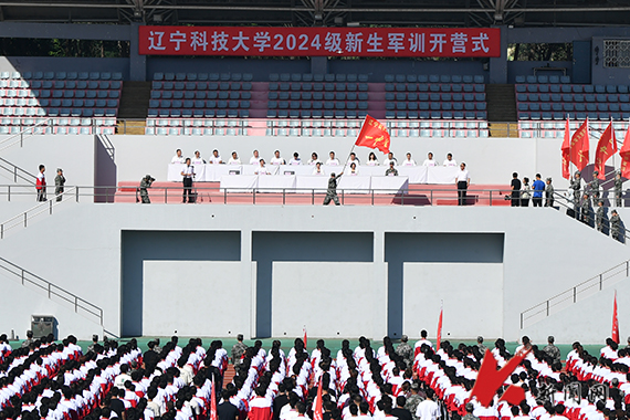 开营式由军训团副团长、学生工作处(部)处(部)长纪振廷主持。开营式上,军训团副团长、安全保卫处处长、武装部部长郭志辉作动员讲话。郭志辉说,同学们要深刻理解把握习近平总书记对青年学生的深情厚望,做一个有方向、有目标、有追求的人;做一个有格局、有担当、有情怀的人;做一个有正气、有底气、有朝气的人。要深刻认识军事技能训练对学生成长成才的重要意义,并通过军训,培养出坚强的意志品质,培养出高尚的爱国主义情怀,培养出敢担当、勇作为的优良作风。教官代表孙诗博、新生代表材料与冶金学院卓冶金2024.3班迟义承作表态发言,他们一致表示,要不辞辛苦、互敬互爱、相互帮助,确保军训顺利进行。
