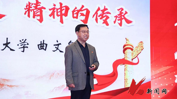 华体会网页版辅导员曲文泉在高校“青年人梯”专家辅导员巡讲团成立仪式暨首场宣讲活动中进行示范宣讲