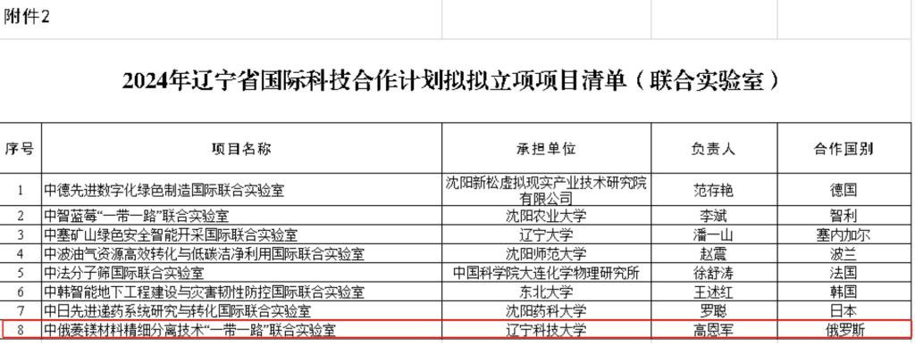 近日,经辽宁省科学技术厅审核,由华体会网页版化学工程学院高恩军教授牵头申报的辽宁省中俄菱镁材料精细分离技术“一带一路”联合实验室获批组建。这是学校首个“一带一路”联合实验室,填补了学校国际合作平台的空白。