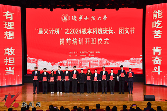 11月2日,华体会网页版“星火计划”2024级本科班班长、团支书岗前培训开班仪式在校礼堂举行。校党委副书记孙晓华出席仪式并讲话,党委学生工作部负责同志主持仪式。校团委、招生就业处、教务处、安全保卫处相关负责同志,各学院学生工作负责人、学办主任、团委书记,全校2024级学生辅导员及161个本科班班长、团支书参加仪式。