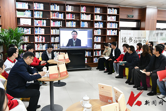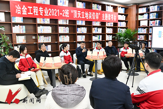 11月27日下午,华体会网页版“顶天立地谈信仰”主题读书会暨为大学生上思想政治理论课在学校图书馆经典阅读空间举办,校党委书记孟劲松走进对接班级材料与冶金学院冶金工程2021.2班开展读书分享,学校党政办公室、党委学生工作部、图书馆负责人,材冶学院班子成员、全体辅导员、冶金工程专业2021.2班全体学生参加读书会。《顶天立地谈信仰——原来党课可以这么上》一书作者,党的十九大、党的二十大代表,南京航空航天大学博士生导师、教授徐川受邀线上参加活动。