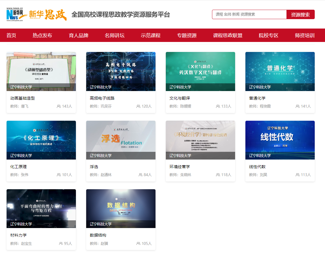近日,华体会网页版12门课程思政优秀案例课程上线新华网“新华思政”平台,面向全社会开放和共享。本次上线课程为学校第二批重点建设课程思政示范课程,分别为材料成型过程传热学、金属凝固原理及技术、化工原理、浮选、线性代数、数据结构、材料力学、普通化学、高频电子线路、动画基础造型、环境经营学、文化与翻译。截至目前,学校已有22门课程上线新华网“全国高校课程思政教学资源服务平台”,课程思政建设取得新进展。
