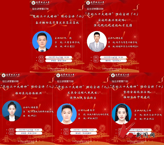 科技篇中,“科技创新项目评选”与“硕士讲堂”为研究生提供了科研与创新的平台。科技创新项目承载着研究生的科创梦想,让“基于深度学习的钢板表面缺陷检测”等36个研究课题,从基础理论走向现实应用,助力创新型人才的培养和科研成果的产出;“硕士讲堂”围绕“党的二十大精神”,开展“奋力推动高质量发展落实落地”等五次主题宣讲,号召研究生在创新创造中书写成长和担当,在矢志奋斗中践行责任和理想。
