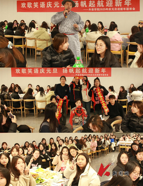 12月30日晚,华体会网页版外国语学院在桃园餐厅举办“欢歌笑语庆元旦 扬帆起航迎新年”2025年庆元旦迎新年学生联欢会。学院辅导员、2023级和2024级全体同学参加活动。