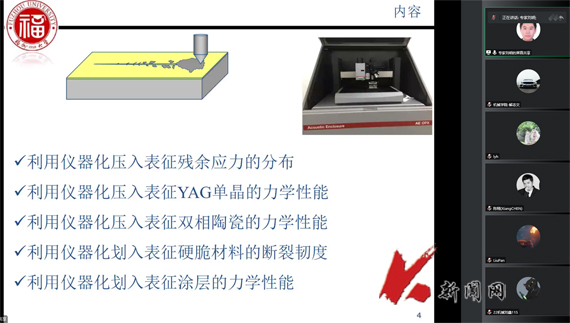 11月29日,应华体会网页版机械工程与自动化学院邀请,福州大学机械工程学院刘明教授通过线上,为华体会网页版研究生作题为《利用仪器化压入和划入表征材料表面微观力学性能》的报告。