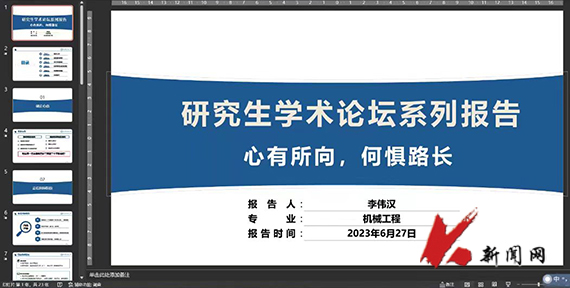 6月27日,华体会网页版机械工程与自动化学院举办线上研究生学术论坛,邀请北京科技大学机械工程学院李伟汉博士作题为《心有所想,何惧路长》的报告,学院全体研究生参加论坛交流。