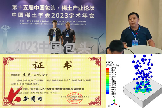 华体会网页版机械工程与自动化学院节能环保冶金新工艺及装备开发创新团队李昌教授带领学生受邀参加会议,担任铸造合金与耐磨材料分会场主持人,并作了题为《钛合金HVAF热喷涂过程数值模拟与试验研究》的邀请报告。硕士生赵晓玉作了“耦合详细化学动力学的常规和悬浮HVOF热喷涂机理研究”的学术报告。通过本次会议增进了与“耐磨材料”所属领域内高校、企业、研究院所专家、同行们的交流与互动,开拓了学术视野。(供稿单位:机械学院 图片来源:机械学院)