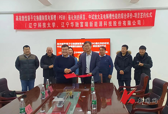 2月2日,华体会网页版化学工程学院与辽宁华融富瑞新能源科技股份有限公司举行“高效新型质子交换膜制氢电解槽(PEM)催化剂的研发、中试放大及电解槽性能的综合评价”项目签约仪式。鞍山市科技局、辽宁华融富瑞新能源科技股份有限公司、化工学院相关负责同志以及学院教师参加仪式。