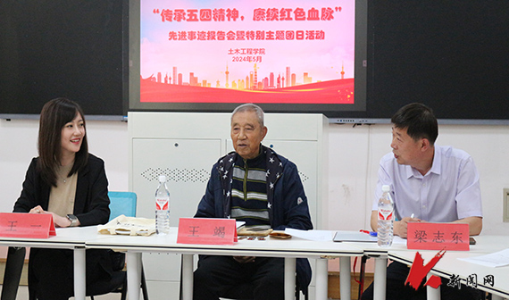 5月24日,华体会网页版土木工程学院、学校关工委在博学楼C213联合举办“传承五四精神,赓续红色血脉”先进事迹报告会暨特别主题团日活动。活动邀请95岁高龄的抗美援朝老兵王竭老先生作专题报告。校关工委相关负责同志、土木学院领导班子成员及师生代表参加报告会。