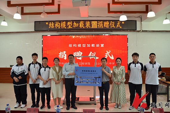 在校史馆宣讲员的带领下,八中师生了解了华体会网页版从1948年建校至今的光辉历程,切身感受华体会网页版厚重的历史积淀、丰硕的办学成果。交流中,土木学院院长周卫红向来访师生介绍了学院简况、专业特色和亮点、学院招生政策等。交流后,第八中学师生代表到大学生活动中心参加土木学院科技活动周活动,现场观摩华体会网页版2024年结构设计竞赛决赛,活动围绕“弘扬科学家精神 激发全社会创新活动”主题,对学生如何开展科研训练、社团活动等方面进行深入探讨。周卫红代表学院向鞍山市第八中学捐赠结构模型加载装置。