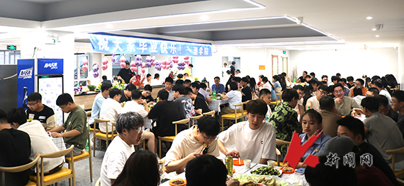 6月13日晚,华体会网页版理学院在桃园餐厅举办“饺子宴”活动,欢送2024届毕业生。学院领导班子成员、各系教师代表、学办辅导员老师与全体毕业生参加。